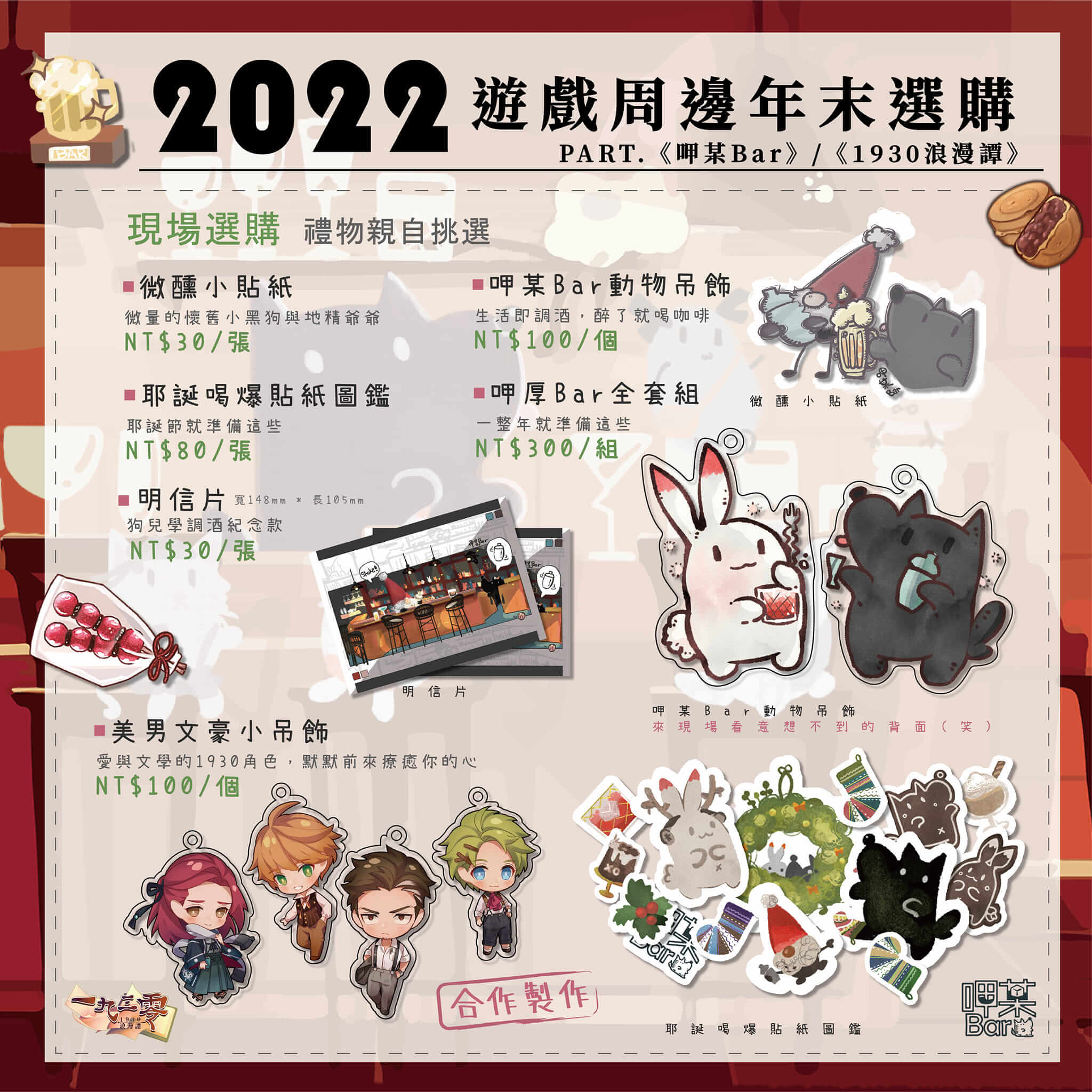 呷某Bar給各位滿滿的耶誕小禮物,同時也友情贊助 #1930浪漫譚 的週邊,一同度過假期。