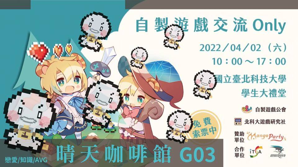 【晴天咖啡館】前進自製遊戲交流! 發佈留言 / 晴天咖啡館 / TK #前進自製遊戲交流Only 各位粉絲好久不見~ 終於!又能和你們見面啦 晴天咖啡館決定在這周末(04/02)與 【晴天咖啡館】前進自製遊戲交流! 閱讀全文 »